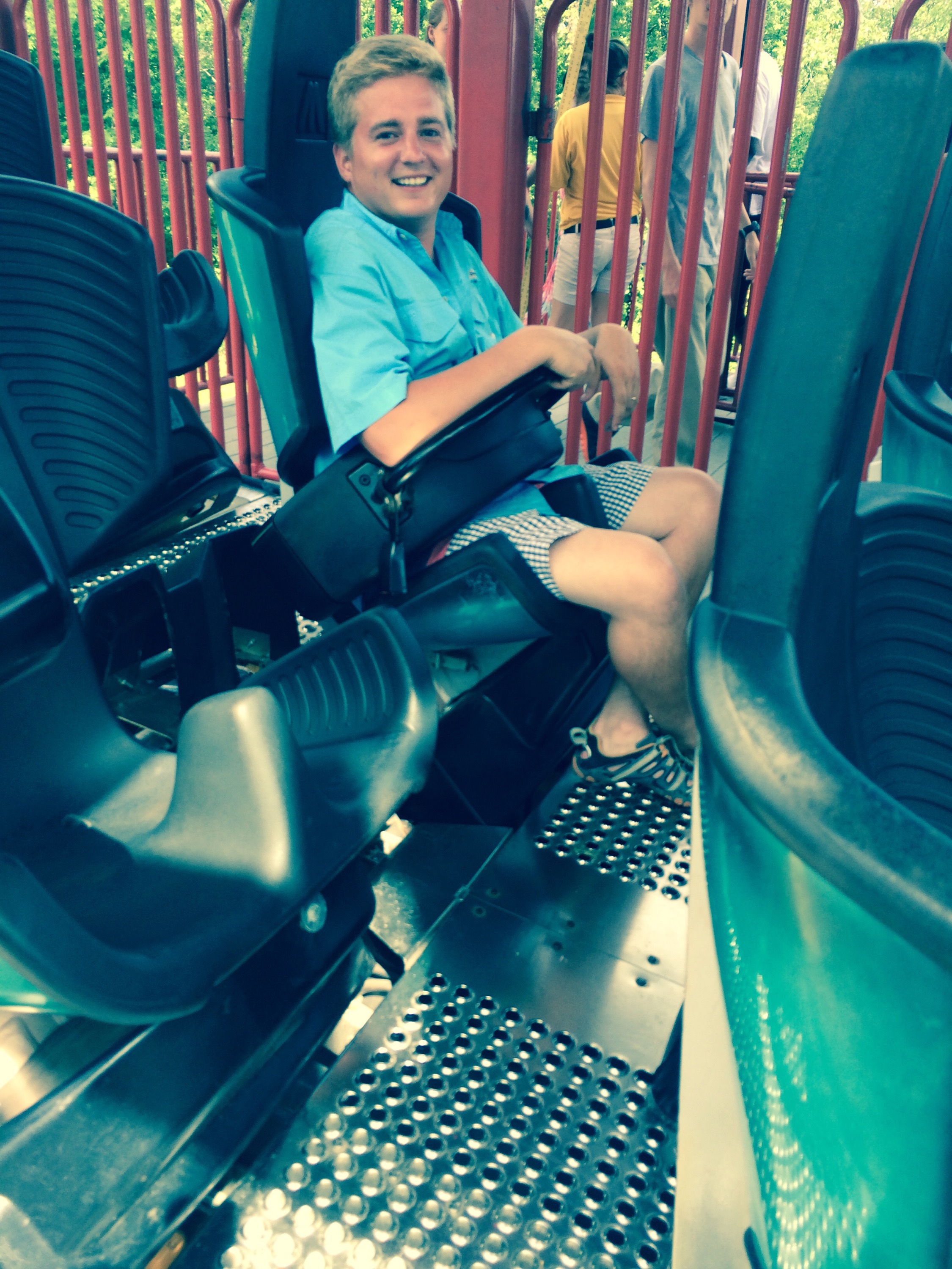 Will got stuck in his seat on me of the roller coasters and just looked like a big baby. They attendant actually had to come unlock his seat for him!