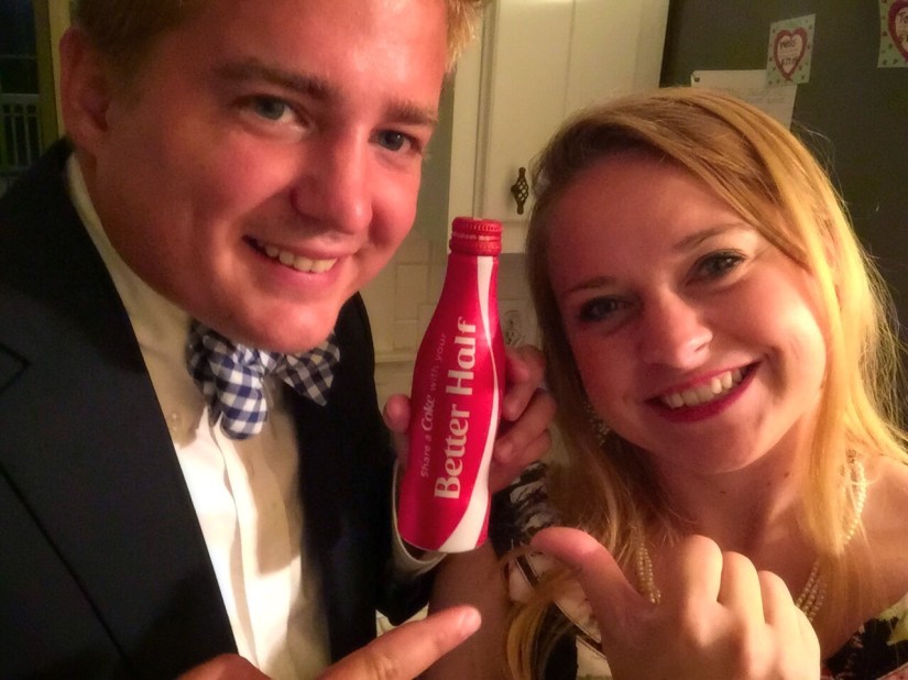 We completed the trip when we got home by going to Kathryn’s on Moon Lake for dinner. We had a slice of cake from our top tier, wine from one of the bottles left over from our rehearsal dinner, and we dressed up! So as I say farewell and thanks for reading pictures from dinner! And one of a coke I found for Will!