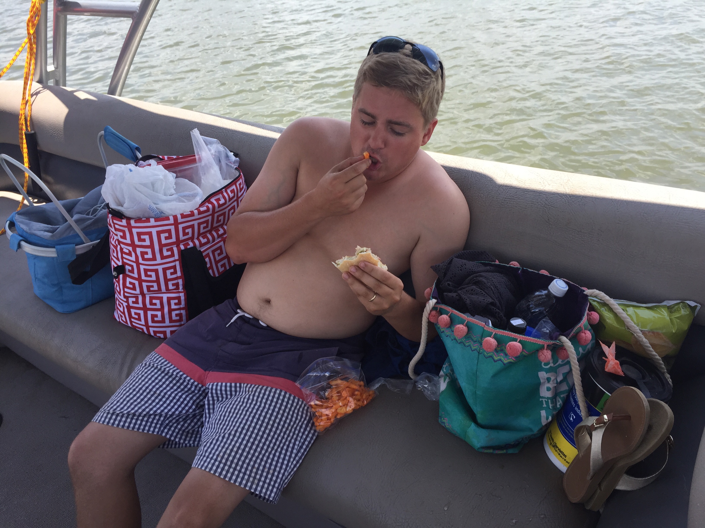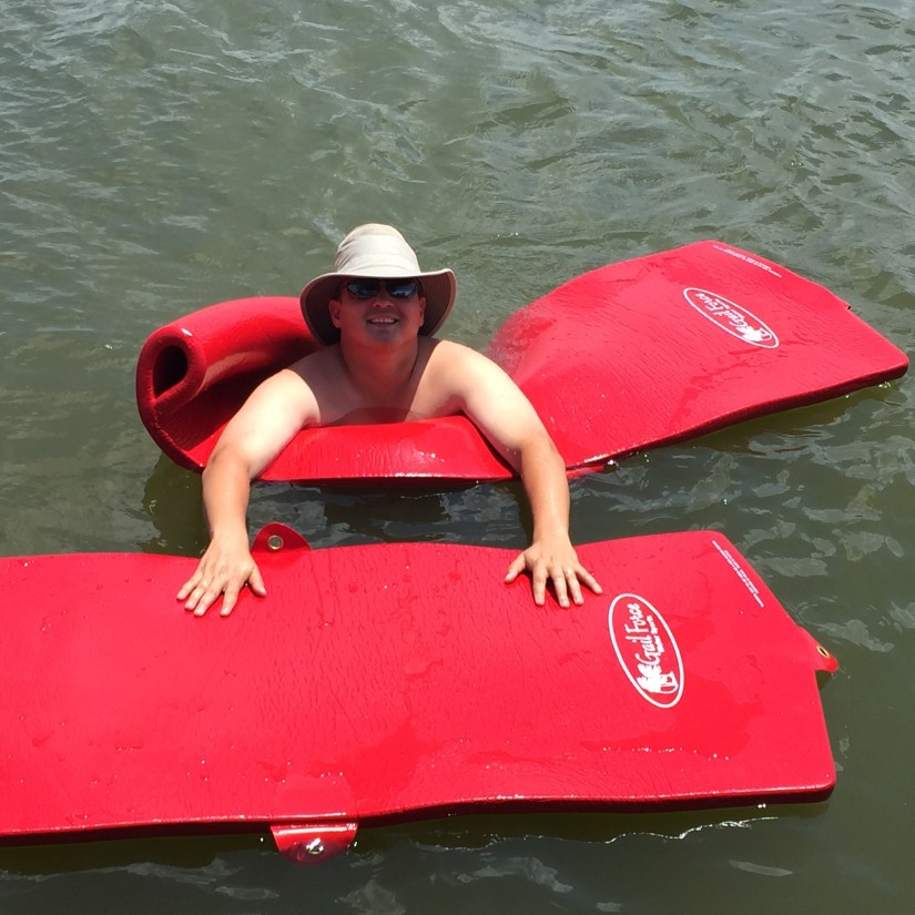 I packed us a lunch so that we wouldn’t have to leave, brought books to read, music to listen to, and of course there were some floats on the boat to play with!