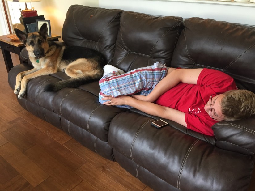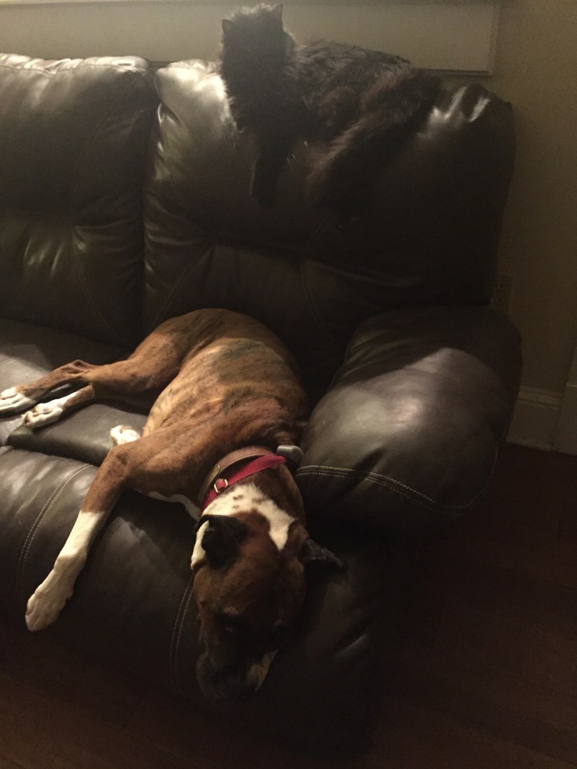 “I’m guarding Toby from Wells!”- Pepper (when really he lays near Toby so Wells won’t bug him!)