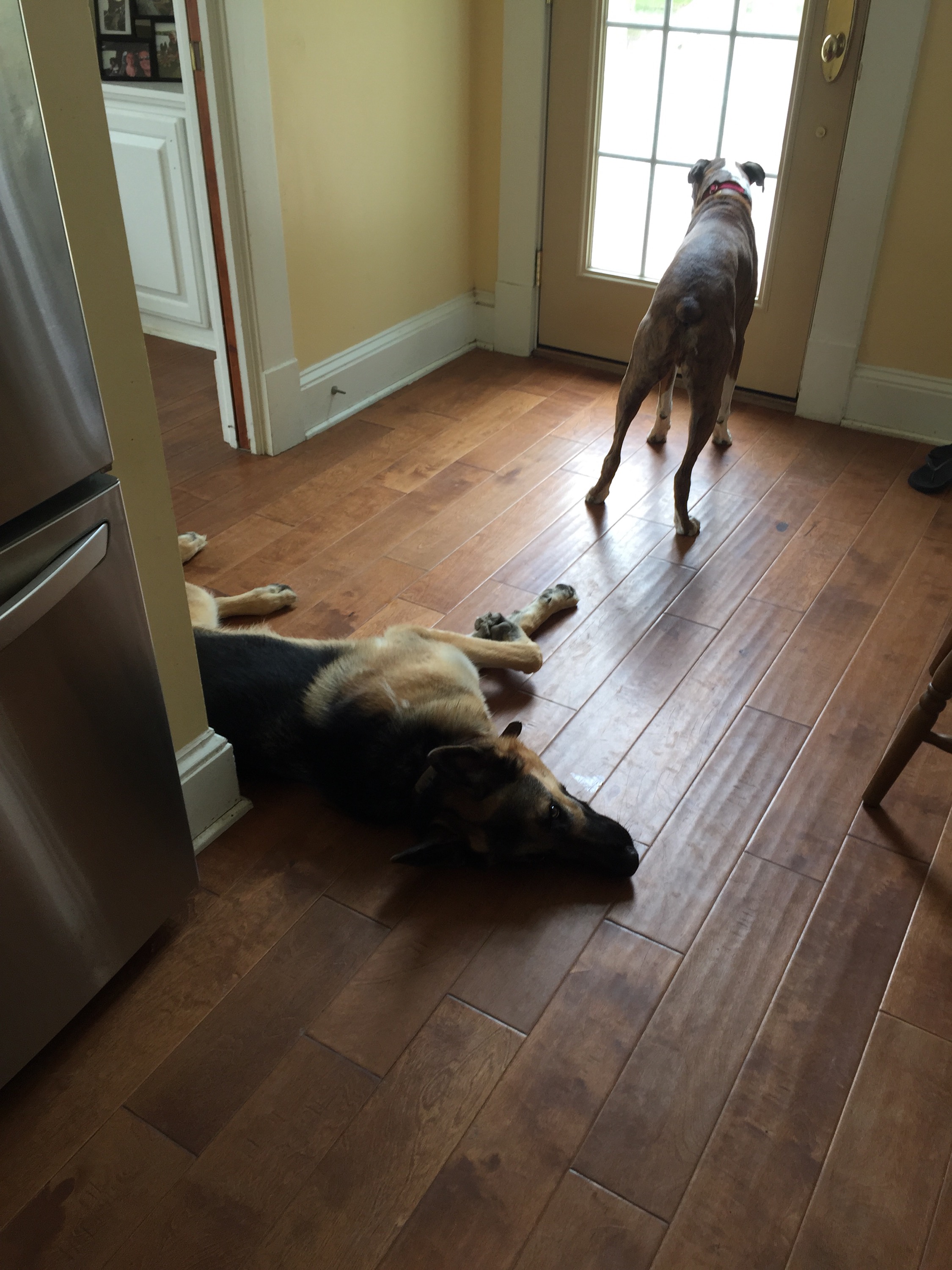 So I figured it would be fun to show you a day in the life of…… THE PETS!  As you know, we have four furry, loving, SNEAKY, energetic, four-legged children.  Two of them are our dogs Toby and Wells, and two of them are our cats, Pepper and Jersey.  So take a look at an average day in the life….