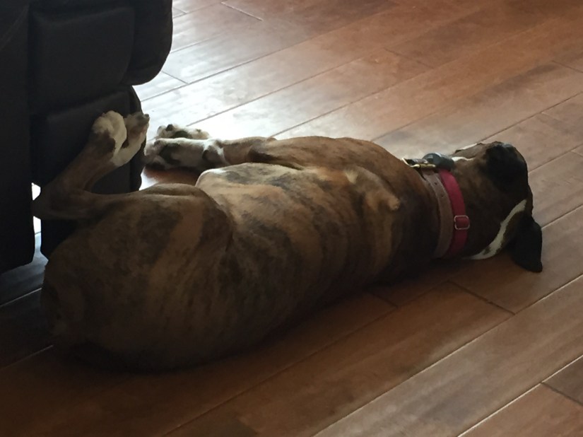 “Feet kicked up! (Not so sure how comfortable this is, but humans like to ‘throw their feet up’) Guess I’ll try it..”- Toby