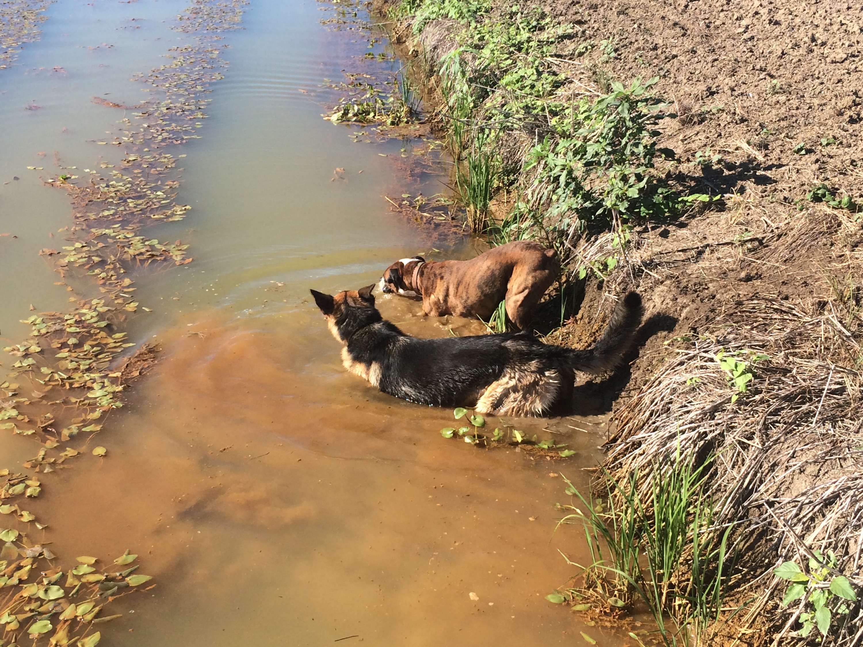 “Sometimes we go on rides in the truck bed!  We see farms, cows, sometimes other dogs, but we don’t jump out!”