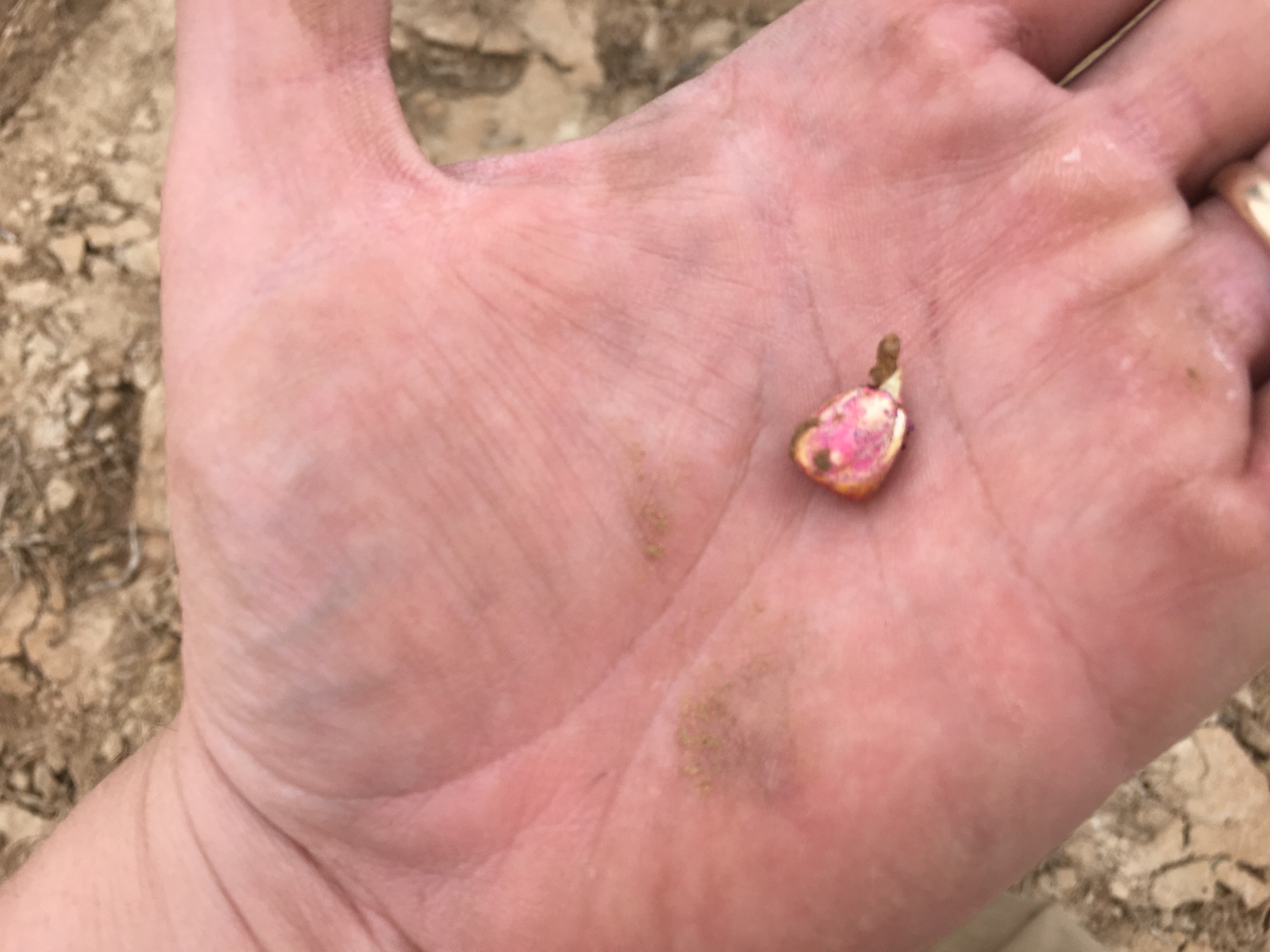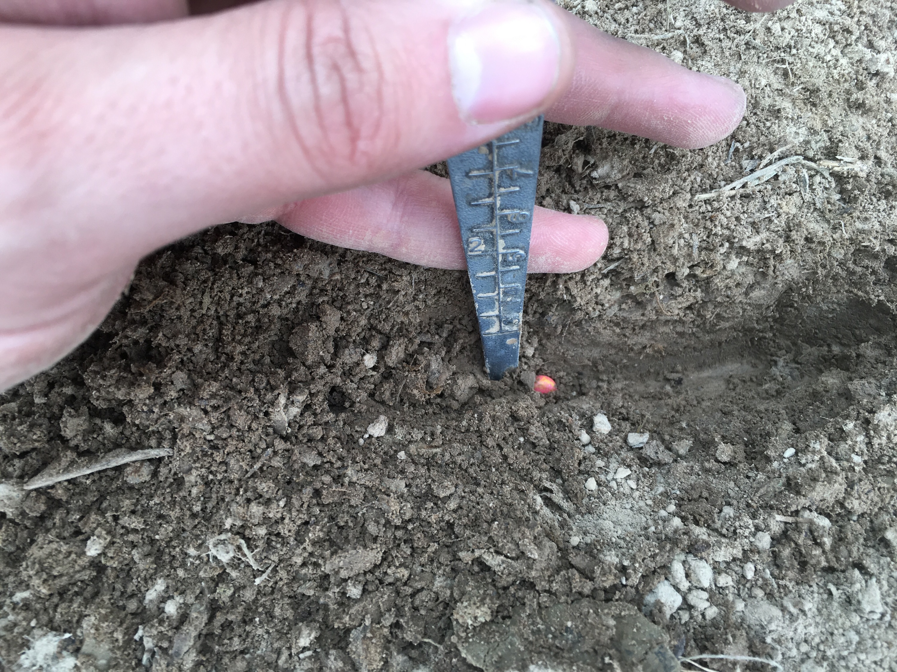 Checking seeds that were planted earlier that are sprouting under ground- they’ll pop up through the dirt in a few days: