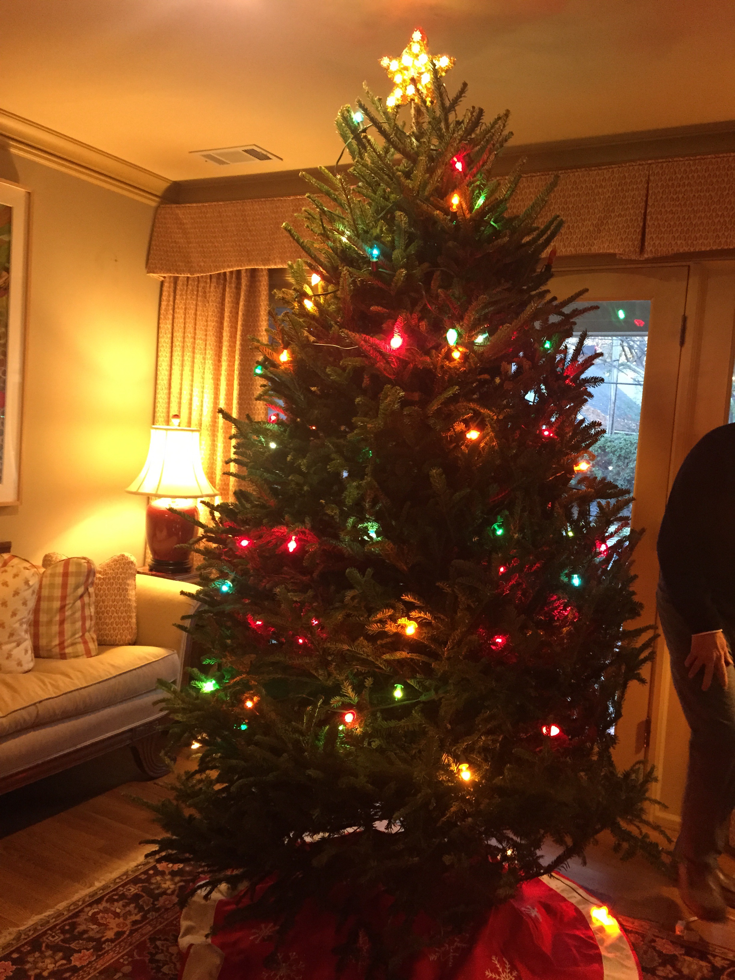 We helped decorate the tree at Will’s parent’s house.  This is the second or third year we have done this with his Dad now- and every year is entertaining! (We never did get the tree very straight…)