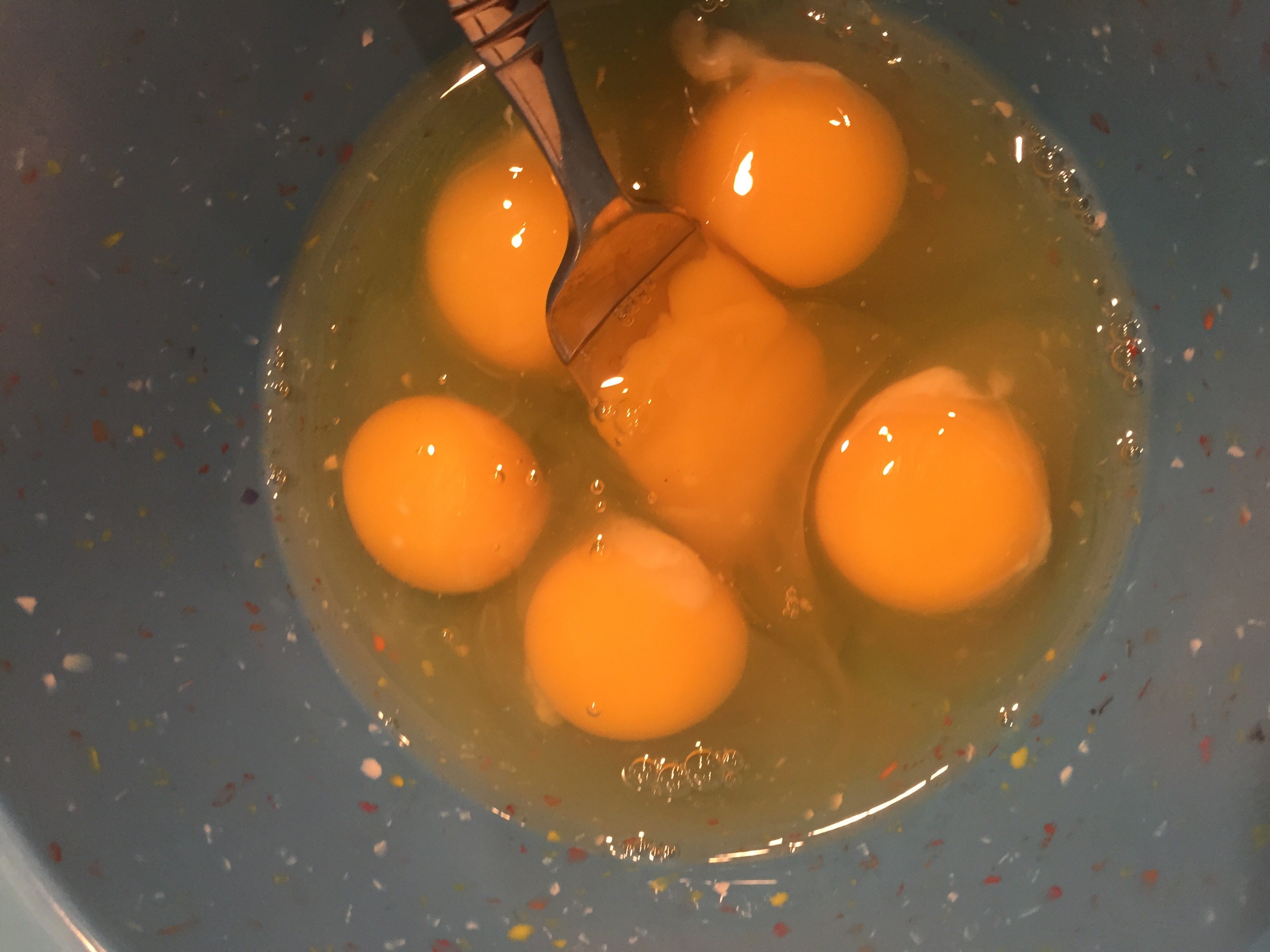 Once everything is chopped, cut up, and prepared, beat your 6 eggs, and set aside!