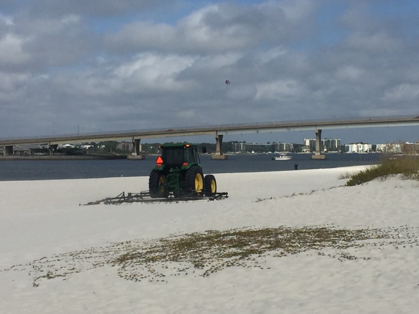 Monday was our last full day so we made it a full beach day. We went on a walk under the bridge and the beach was so quiet! We actually found a guy scraping the sand on John Deere equipment. It was like seeing a little of the farm at the beach!