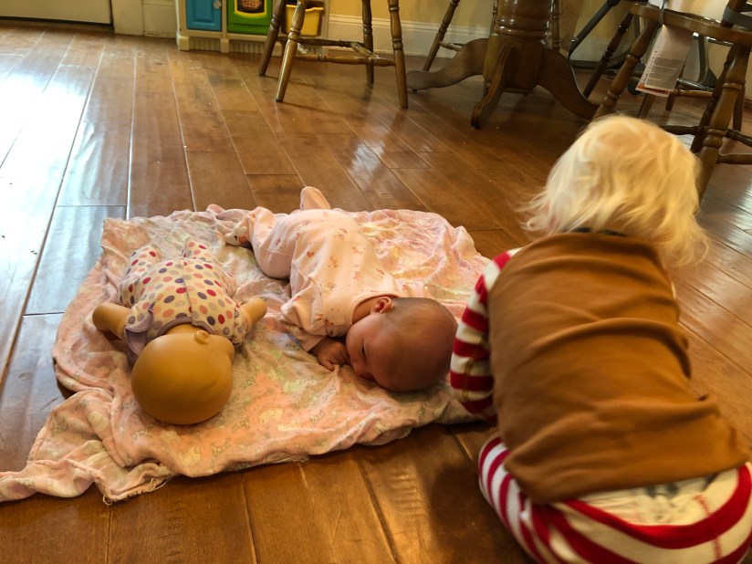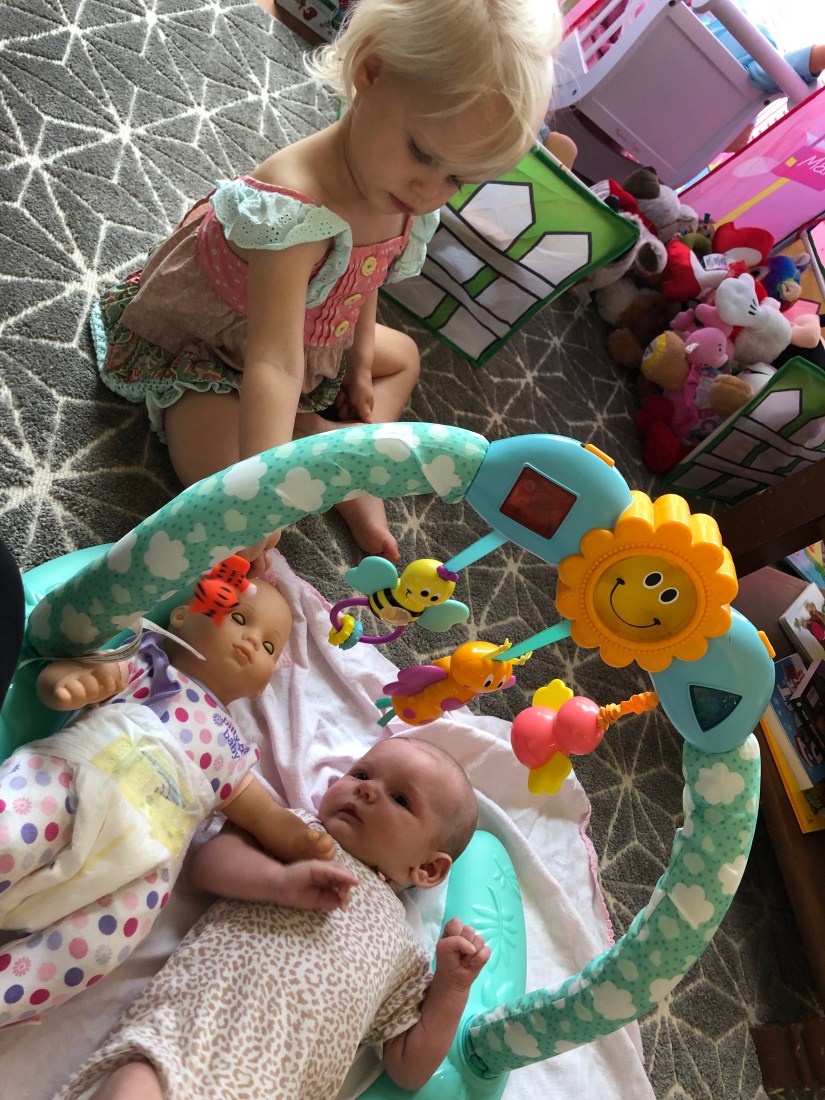 You and your sister have some of the sweetest moments together! She is truly loving you more by the day, and I’m pretty sure she thinks you’re her baby doll! She likes for me to lay you in her bed, and she wishes I would leave you both there, as she always says “bye!” Once I put you beside her!