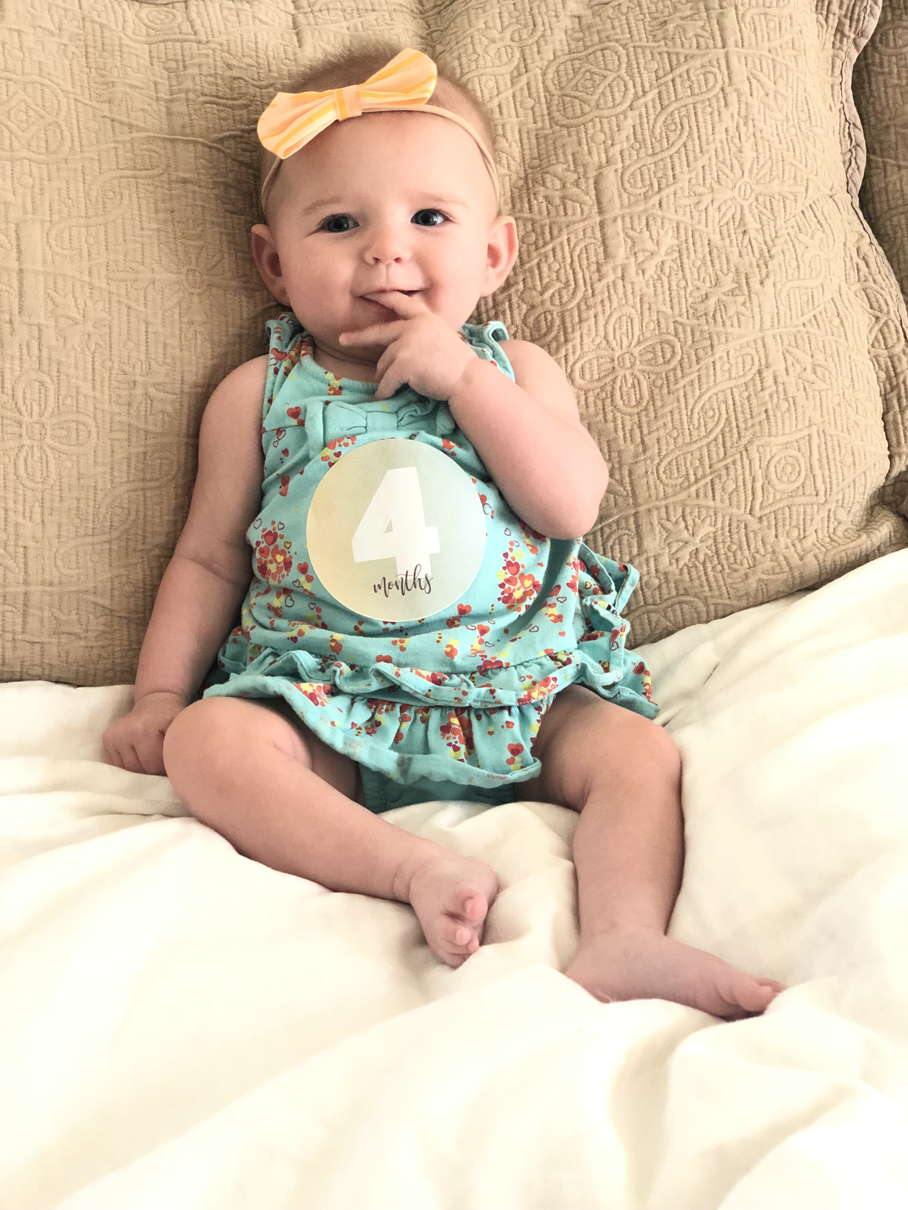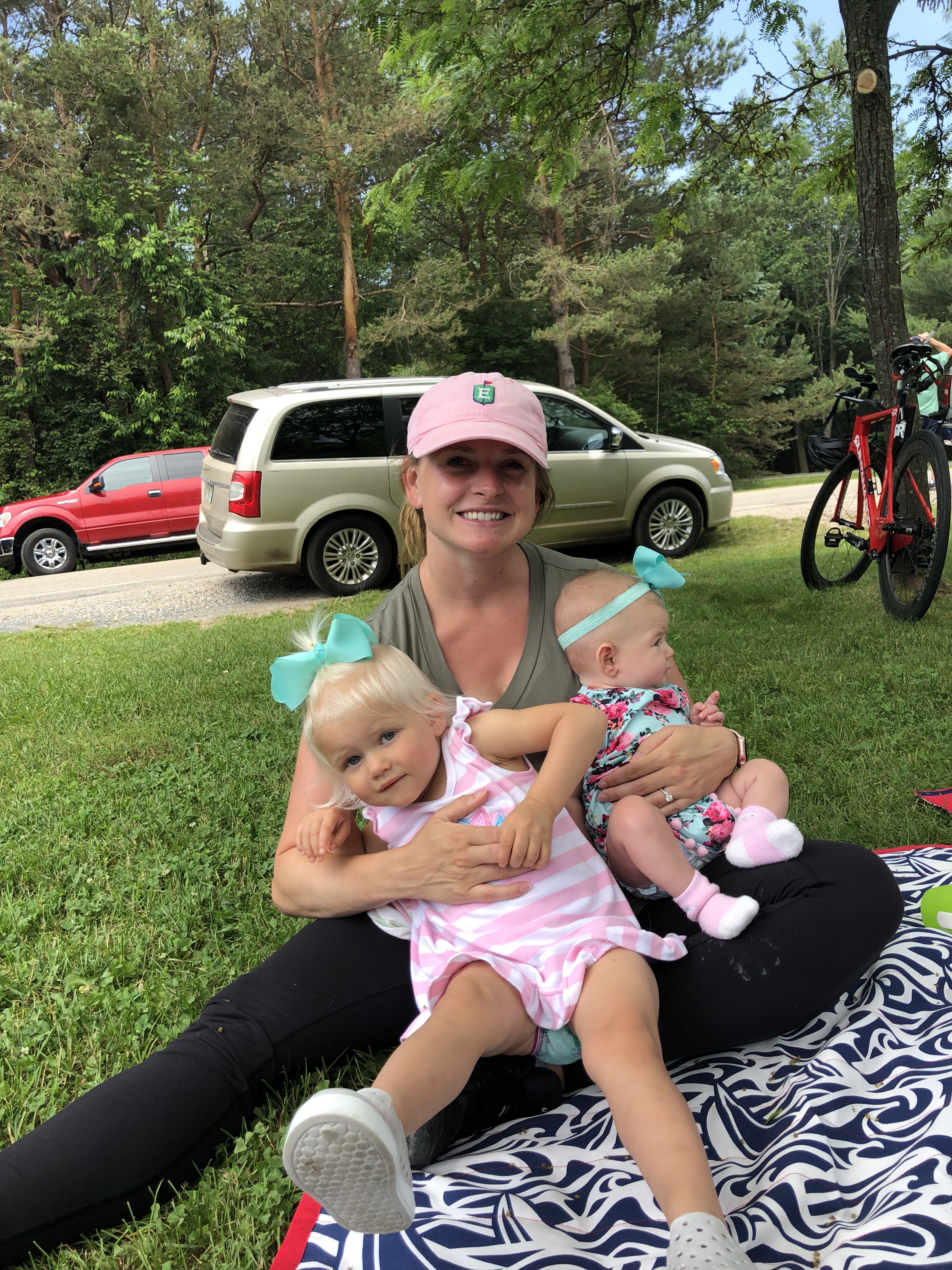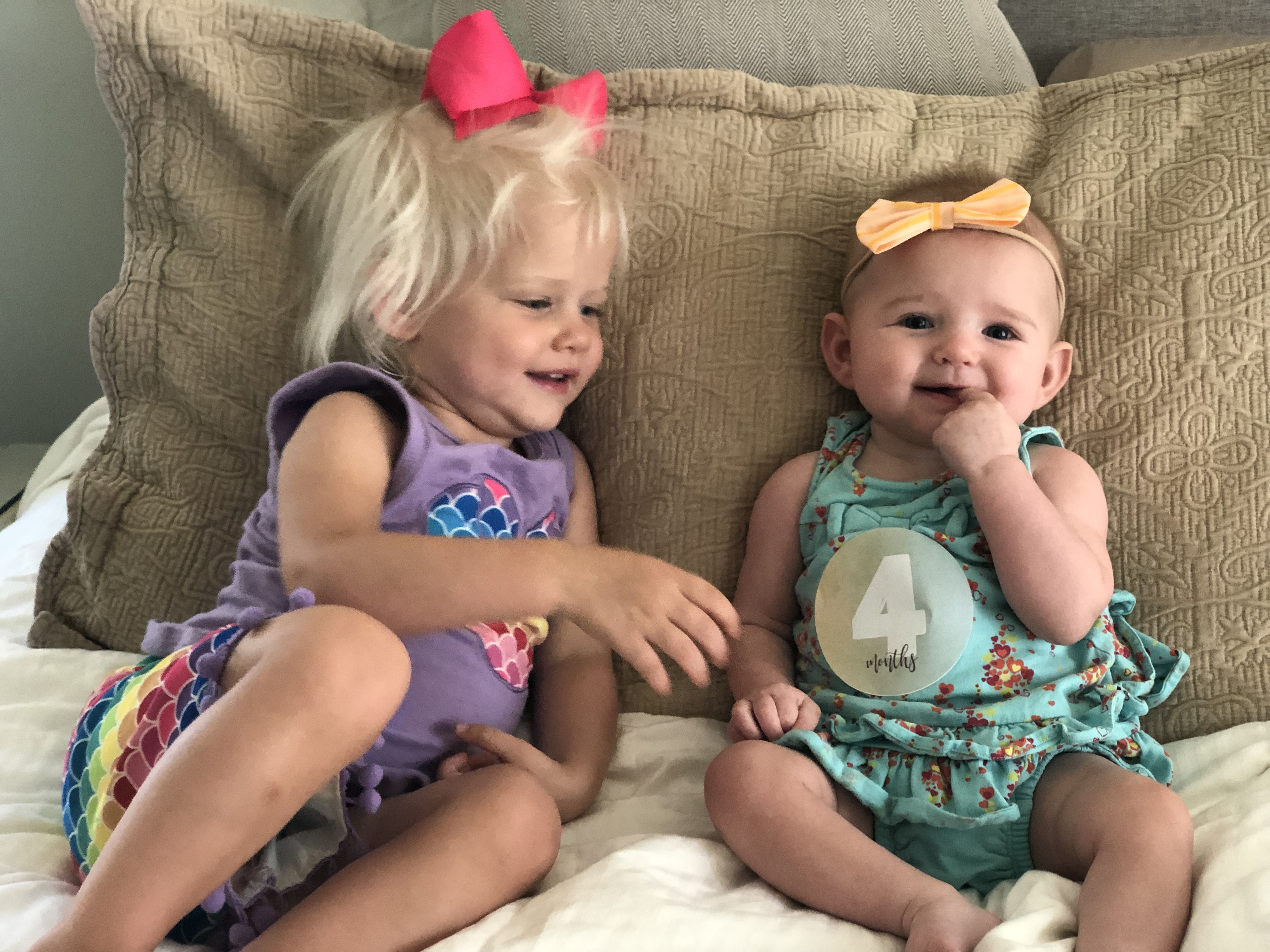 Four months was a big month for Eloise! On June 27 (She had just turned 3 months!) we finished off our first long road trip with the girls! We headed up to Michigan for a family trip with Will’s side of the family. The first half, even two thirds of the trip was honestly pretty easy! But, that last third may as well have been as long as the first two thirds! Eloise was still so young that we had to stop every three hours to move her and nurse her, which we expected…..however, Annabelle Grace was super new to potty training, so she also was having to stop fairly often. Between the two of them….wow…it was a longgggggg trip!