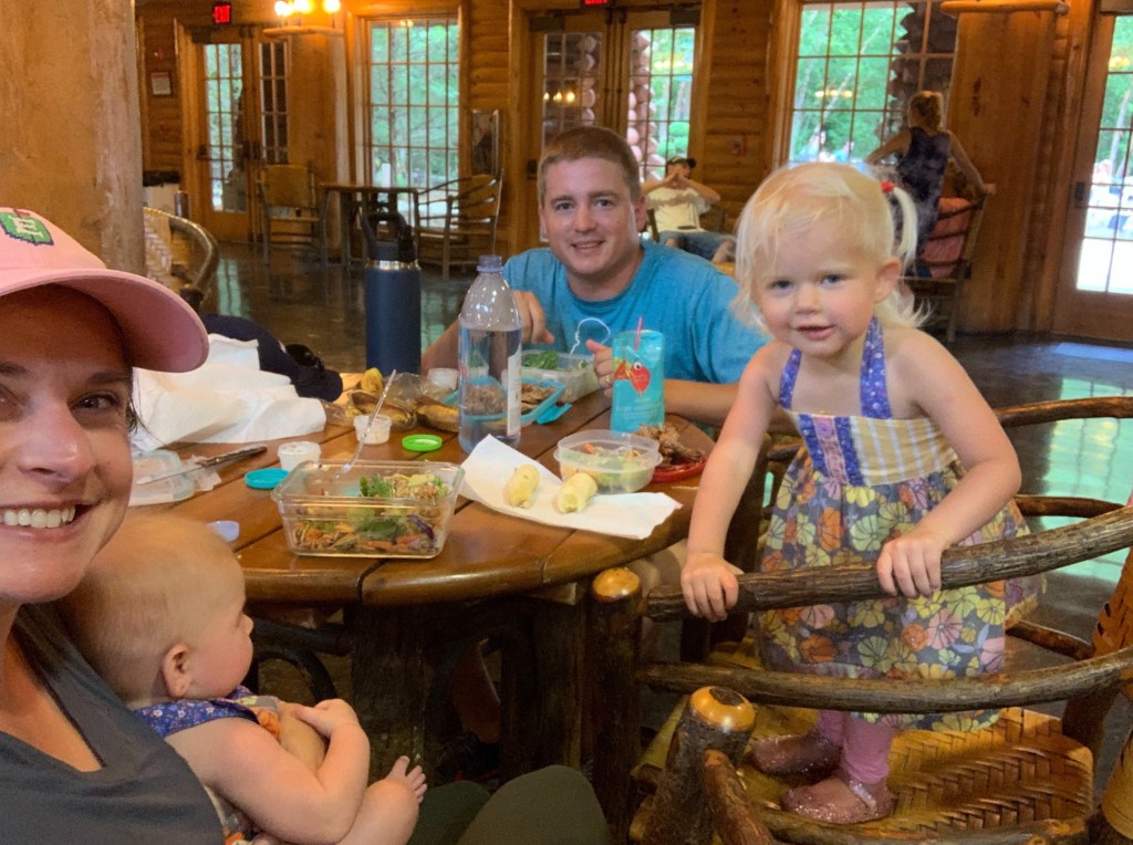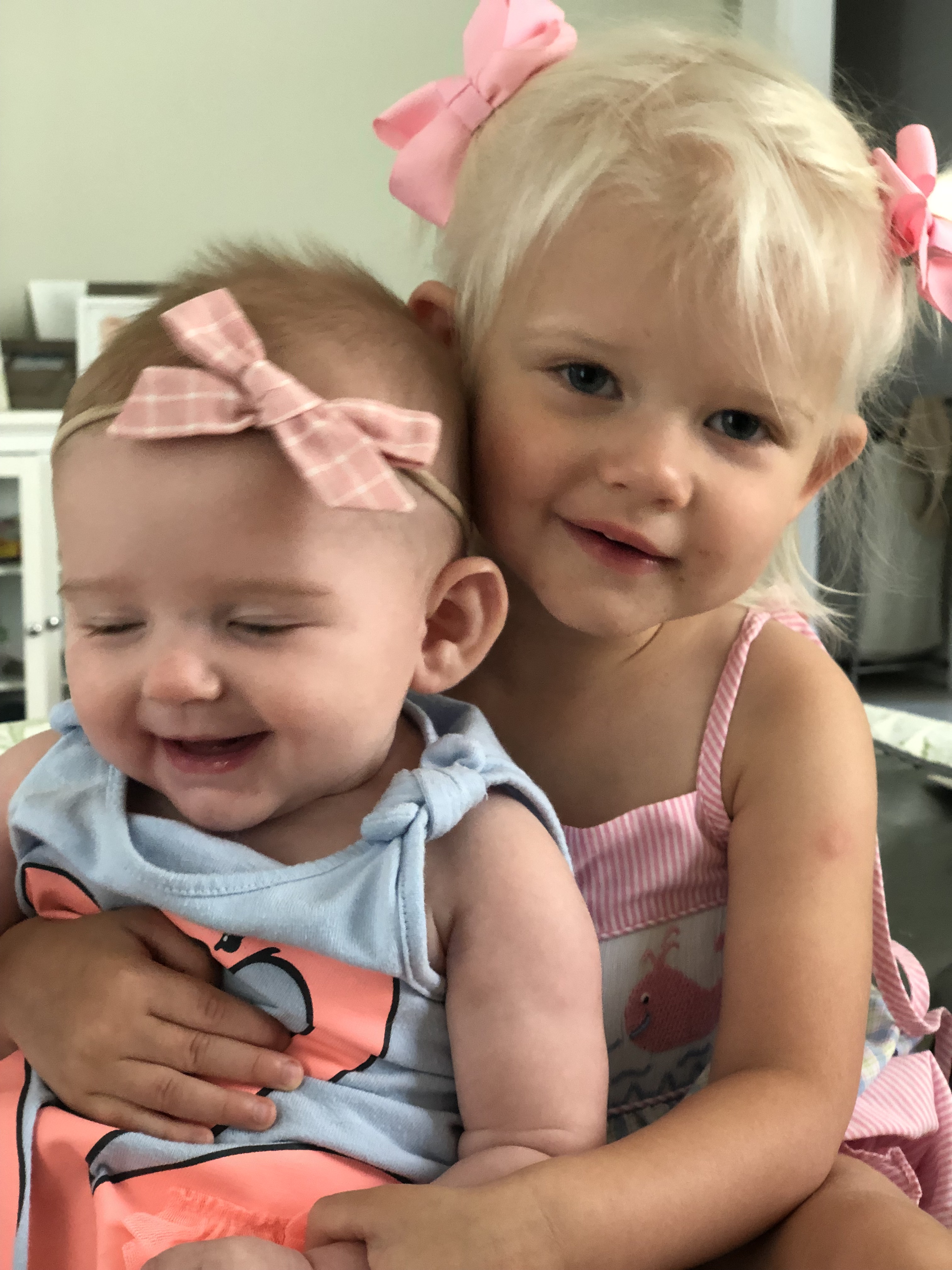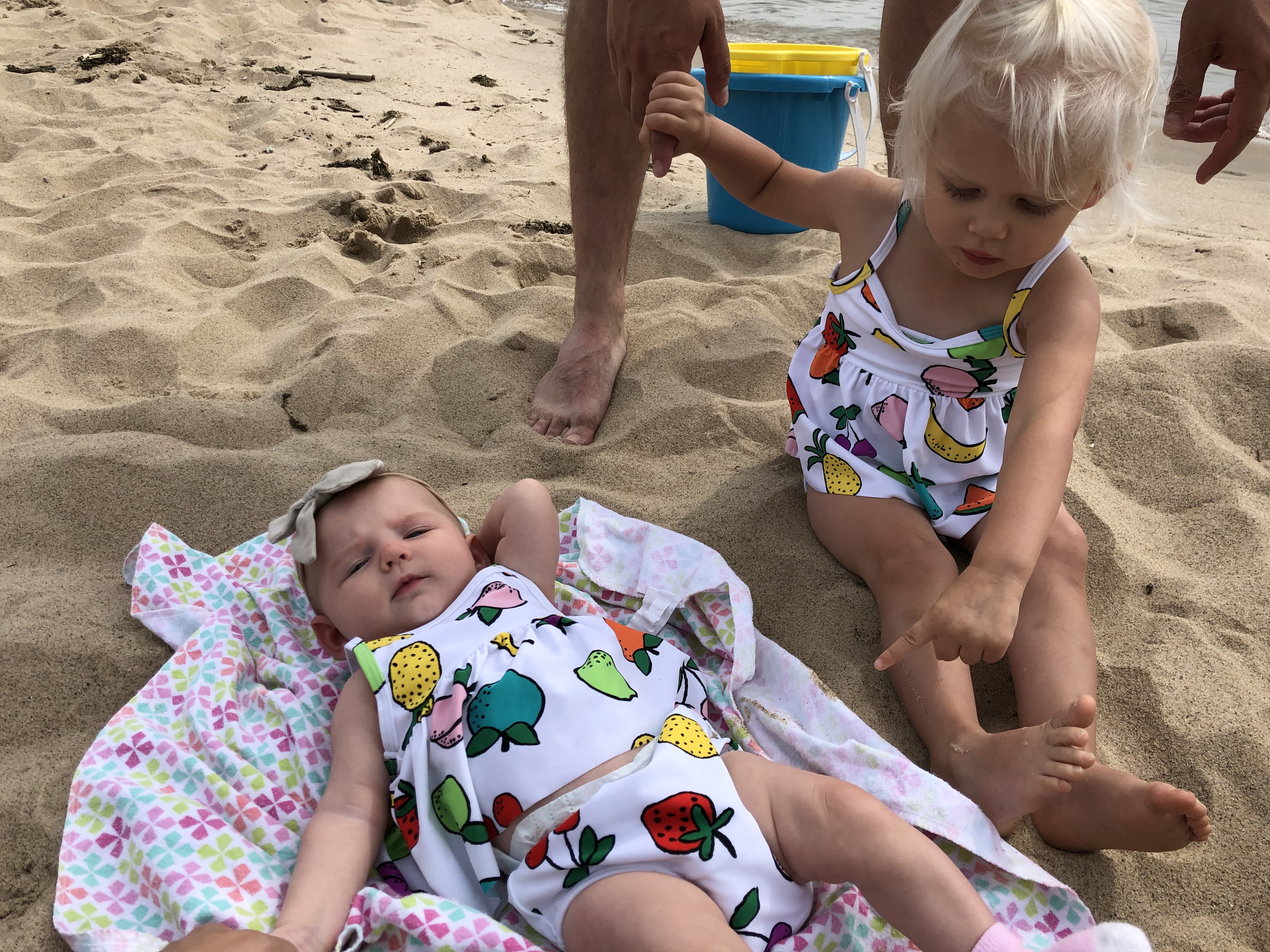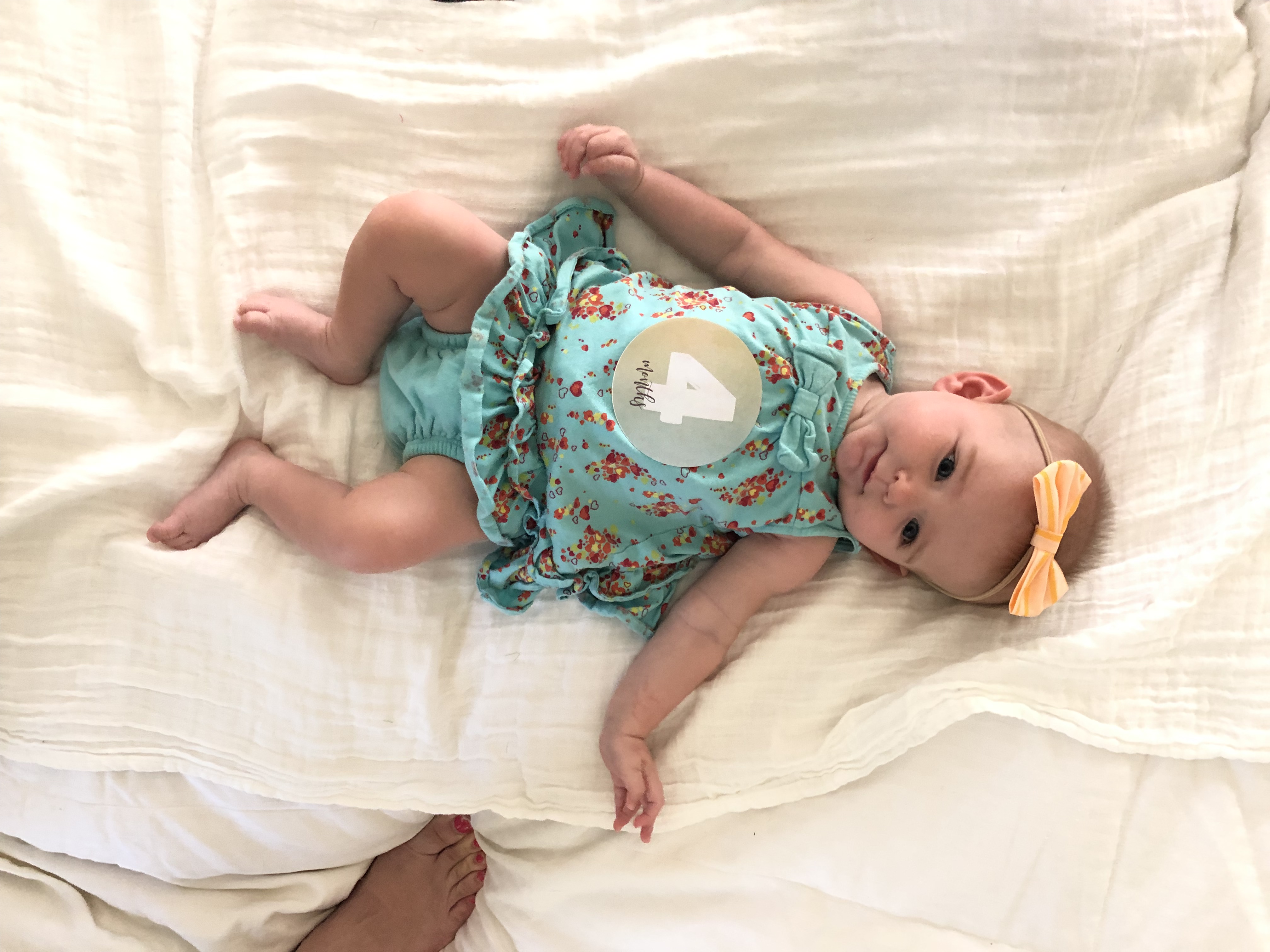 Four months was a big month for Eloise! On June 27 (She had just turned 3 months!) we finished off our first long road trip with the girls! We headed up to Michigan for a family trip with Will’s side of the family. The first half, even two thirds of the trip was honestly pretty easy! But, that last third may as well have been as long as the first two thirds! Eloise was still so young that we had to stop every three hours to move her and nurse her, which we expected…..however, Annabelle Grace was super new to potty training, so she also was having to stop fairly often. Between the two of them….wow…it was a longgggggg trip!