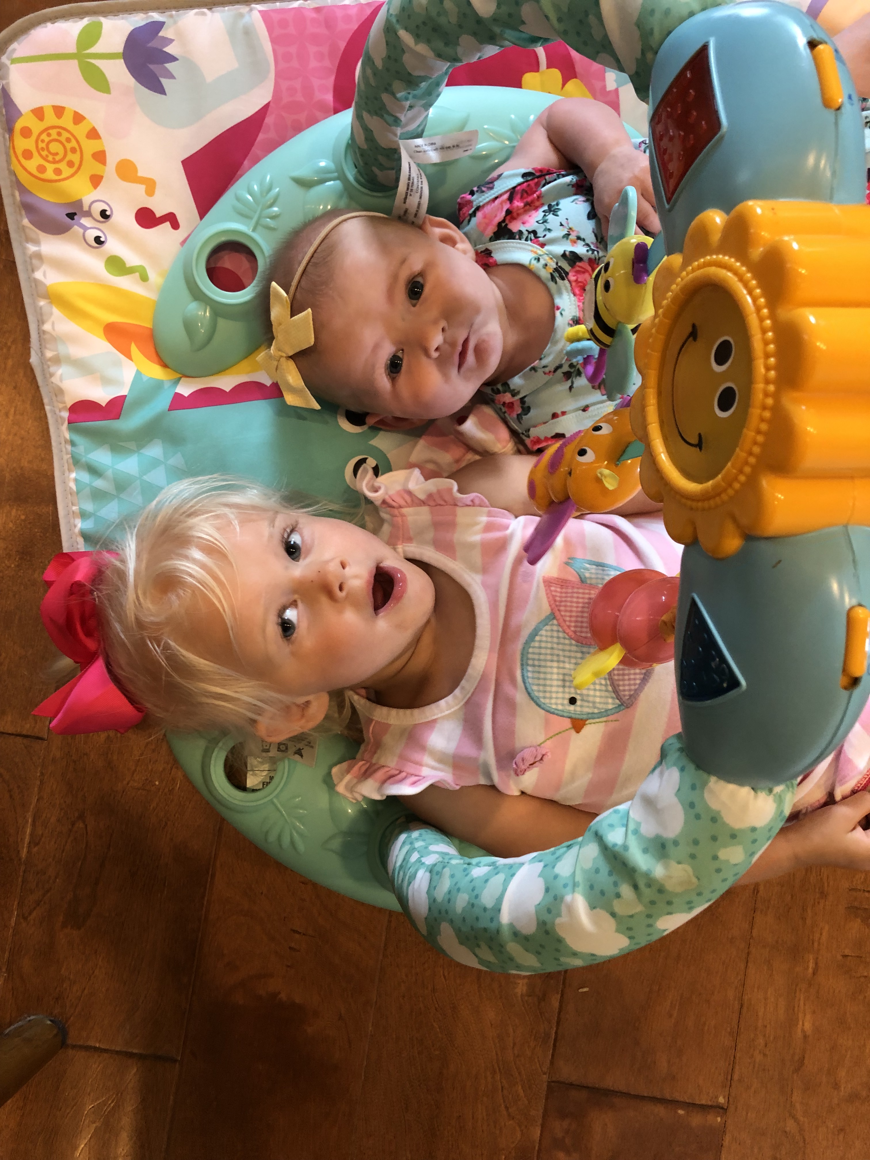 Tummy time and back play are still in full swing, and Annabelle loves to participate with Eloise! She wants Eloise to play back with her all the time! One of these days she will, and we’ll see how much she loves it then…. hahaha