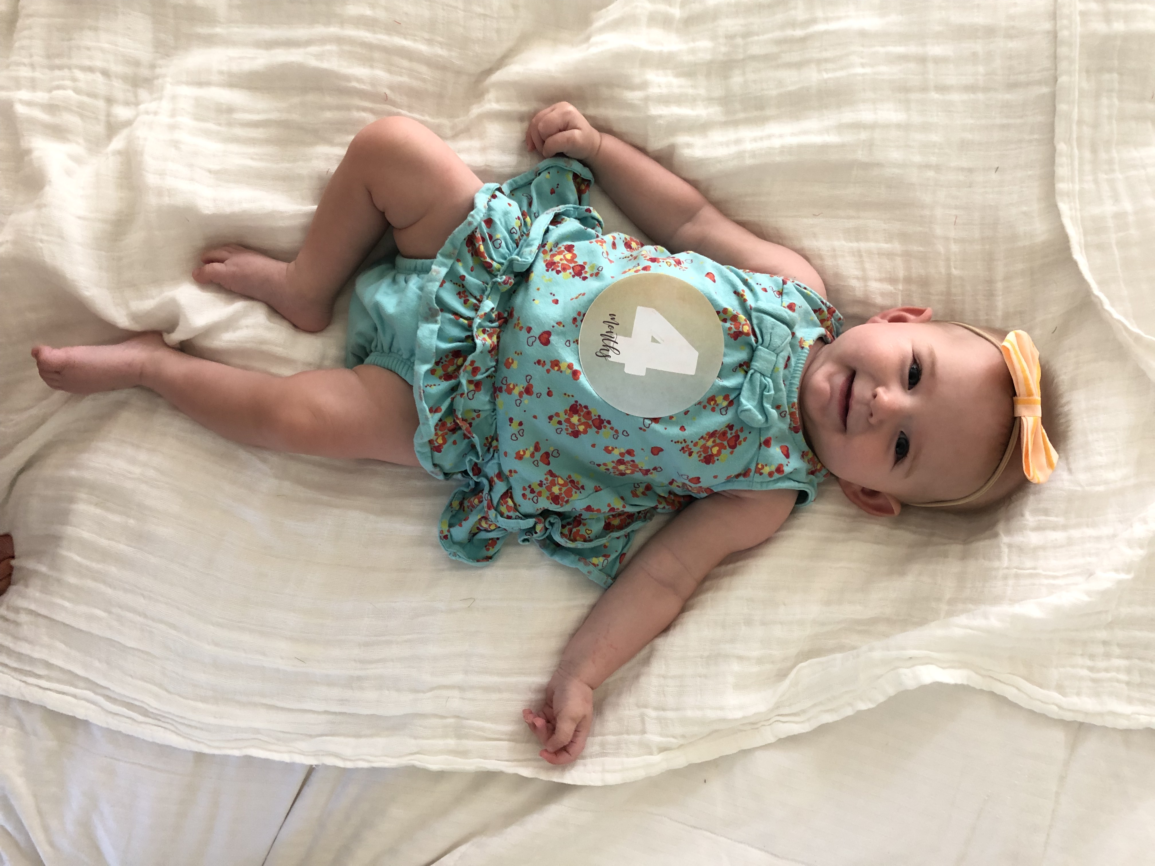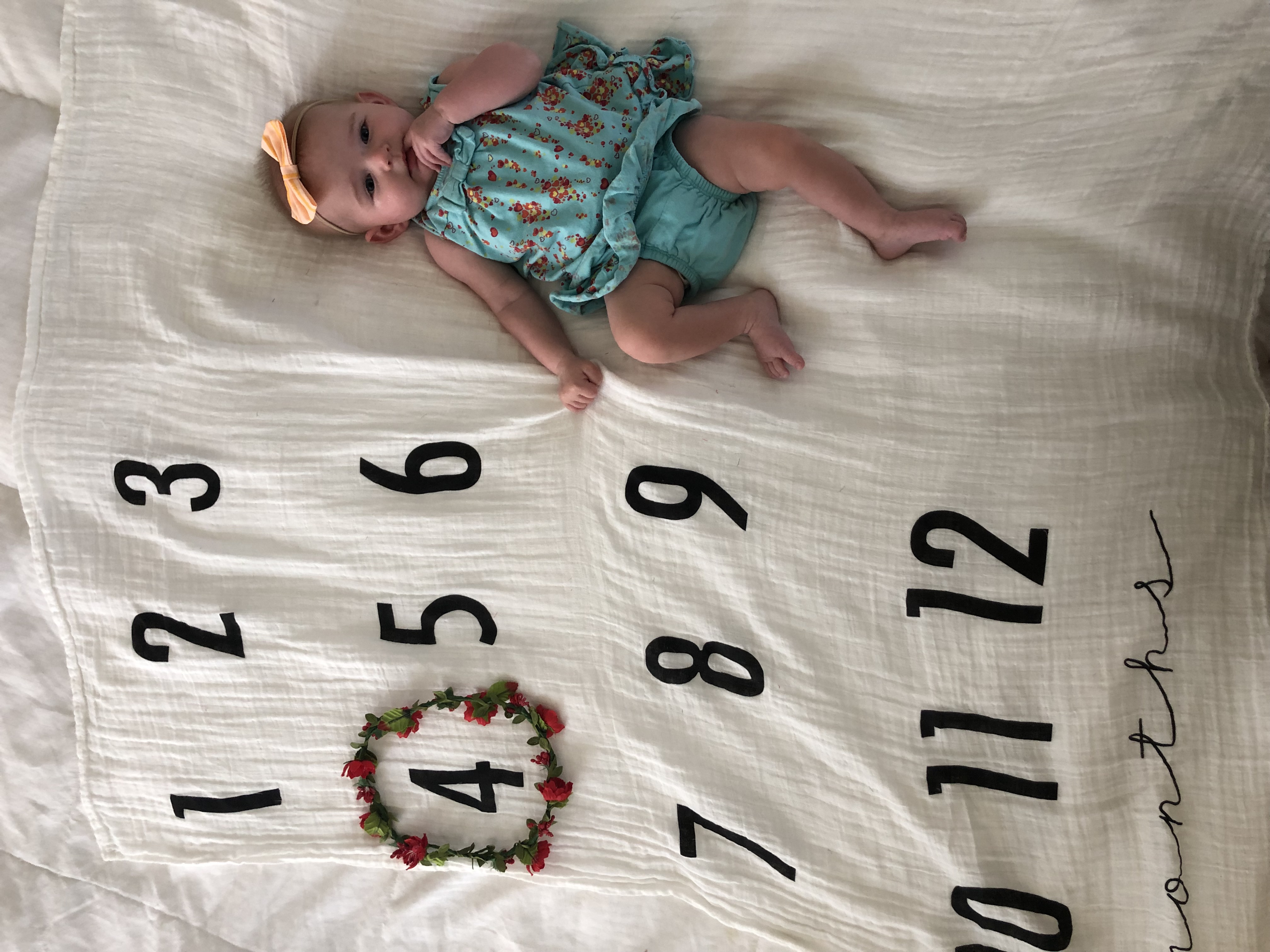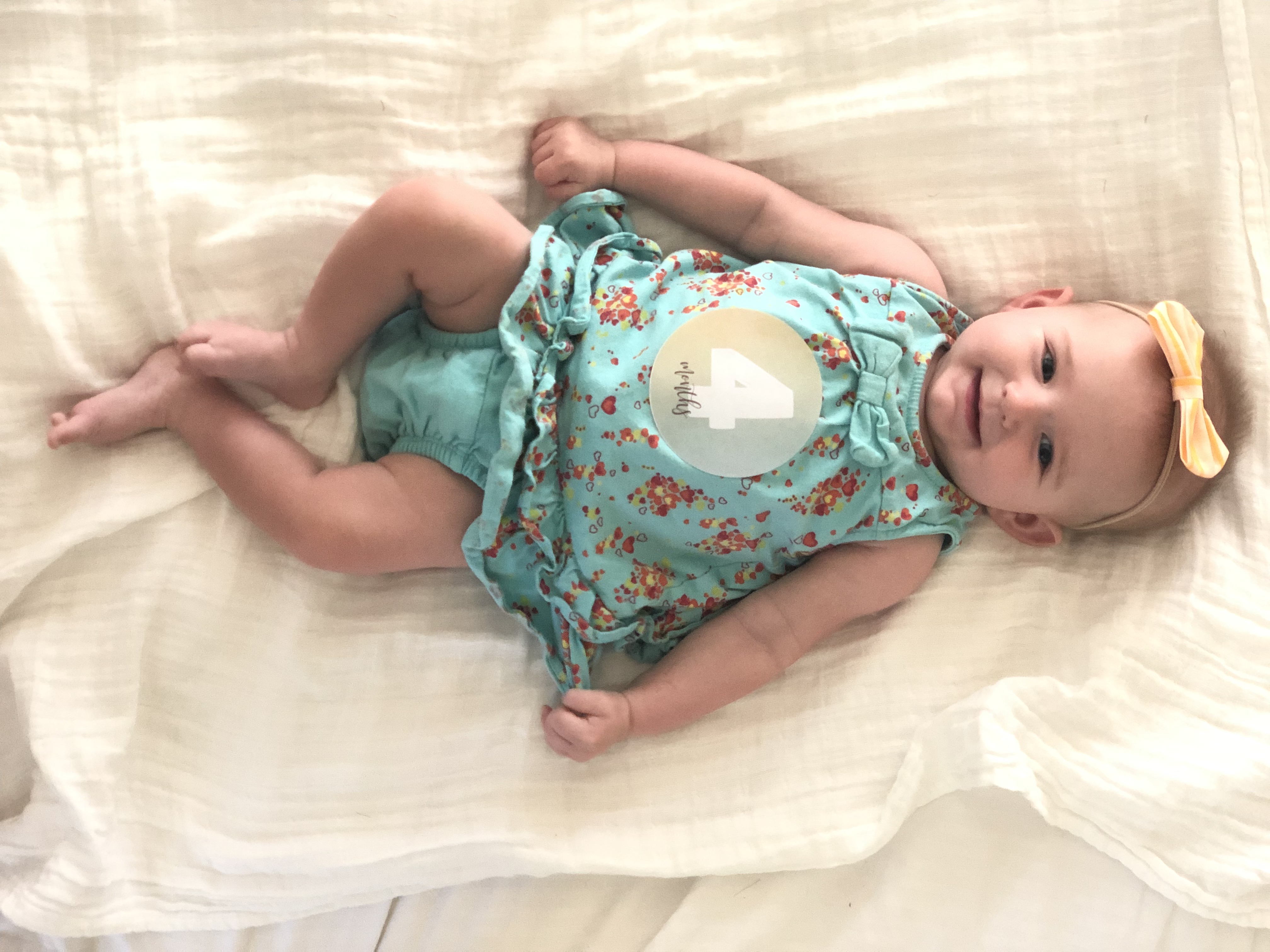 All in all, this was a great month! We’re all really finding a rhythm! Eloise is close to being able to roll over! Really, she probably could do it, but prefers to be lazy. She is still a HUGE fan of mommy, but is thankfully sleeping really well besides a few crazy nights now and again. We thought she was getting a tooth in- even the pediatrician saw the spot, but, it seems to have disappeared, so no teeth! We love our little Eloise Kate!