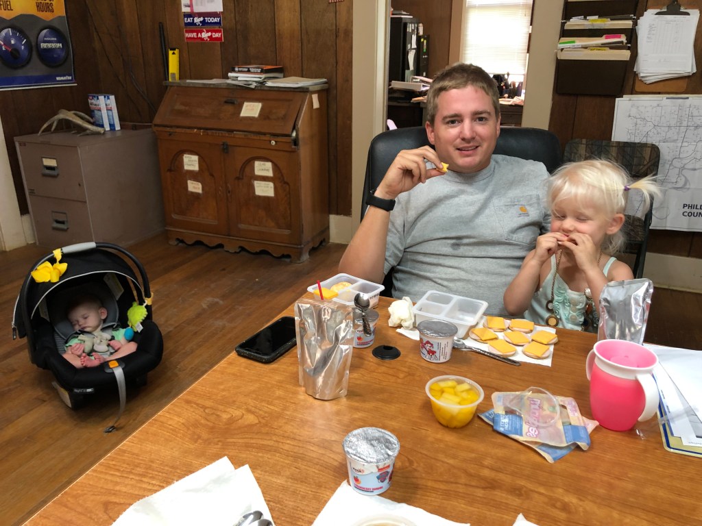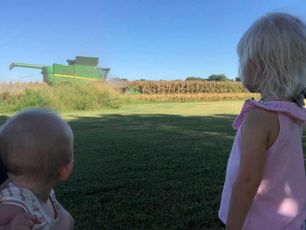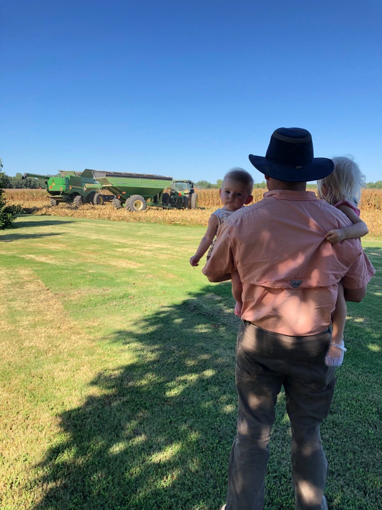 We’ve taken a few trips to the farm to see Daddy since it is officially harvest season! The trips down to him are hard- loading both littles up, a potty, milk, naps, and whatever we’re eating, all revolving around the naps, but the trips sure are sweet and worth it. It’s been super important to both me and Will to make the farm fun for the girls. We also know they don’t get much Daddy time several months out of the year, so it’s nice to keep him “in the picture” by heading down to see him. We all four enjoy it, and are so happy Eloise is getting to experience her first season! She was born during planting season, and I had a crazy recovery, so we didn’t make it down to Daddy back then!