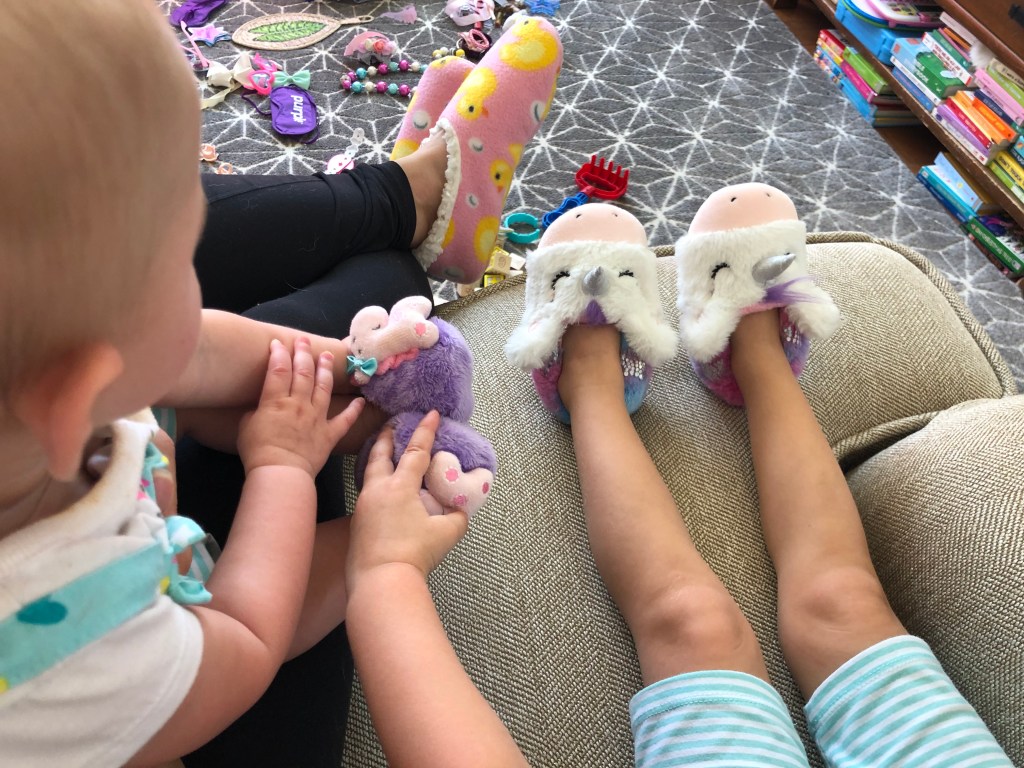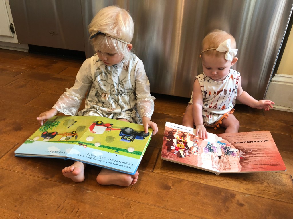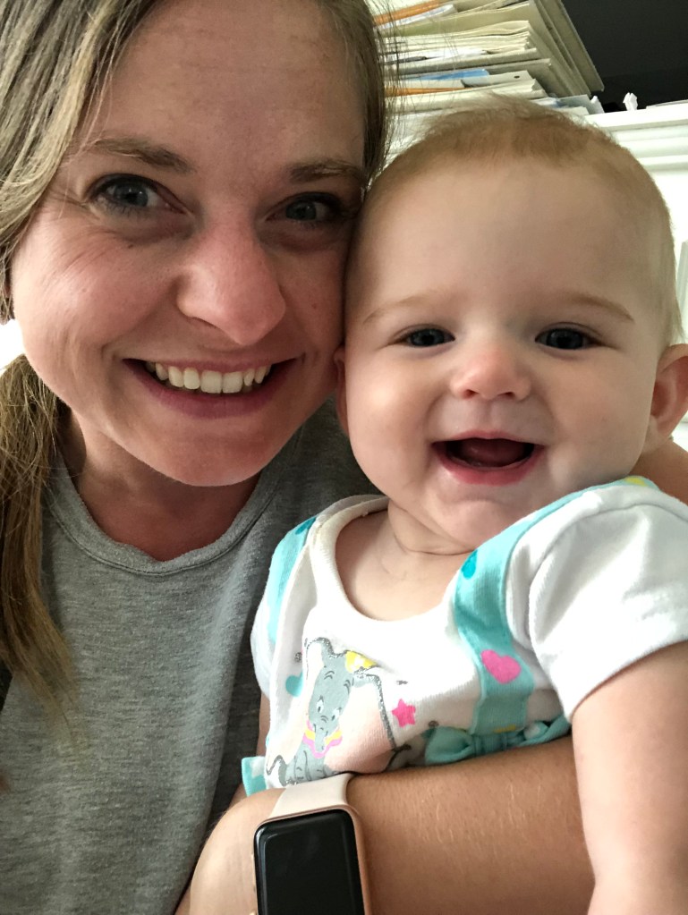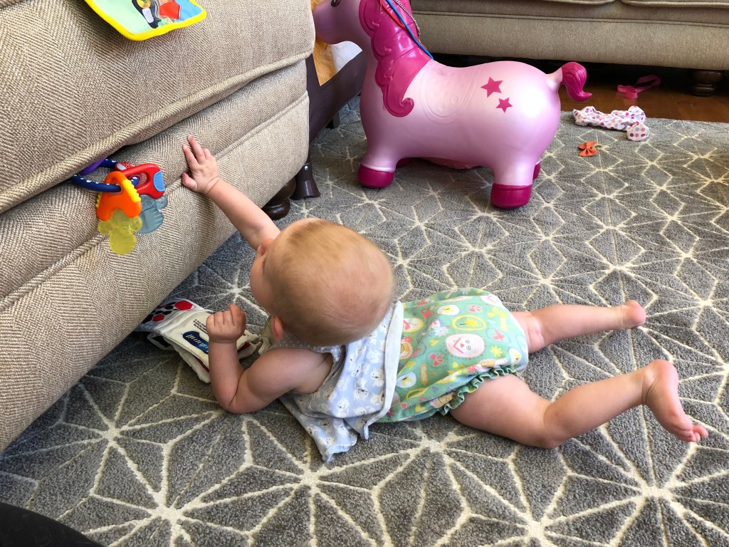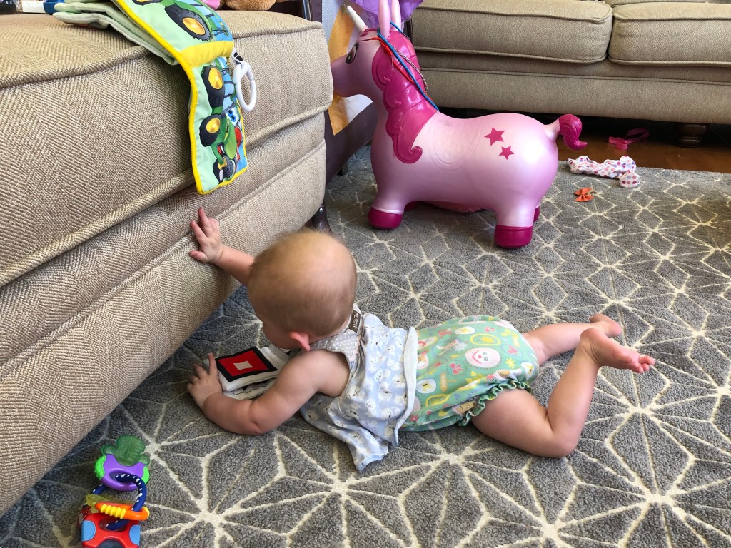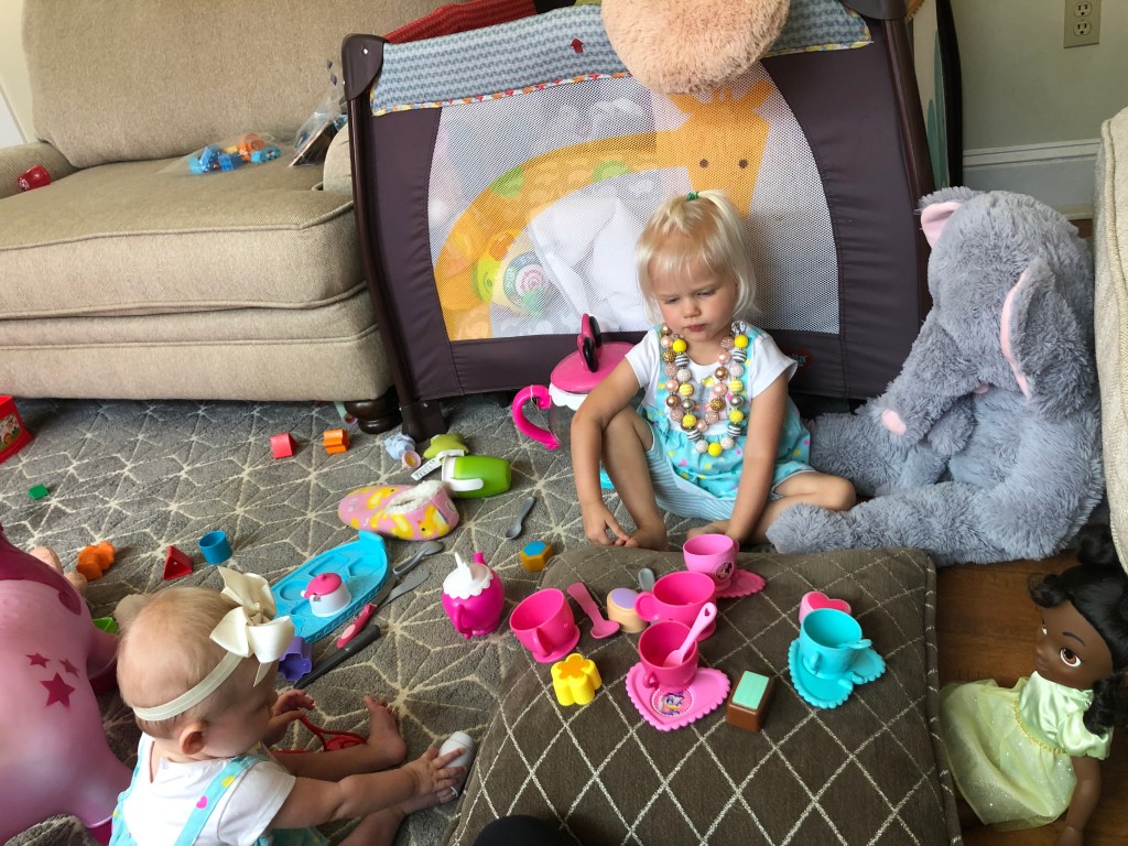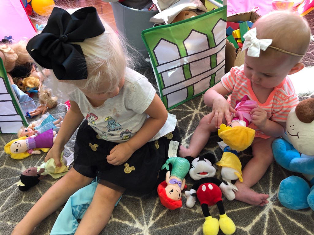The girls and I also spend a TON of time outside! We head to the park most mornings to stroller walk and then play. Eloise is still napping three times a day, but every now and then, she is awake to come out too! She got to swing in the bucket swings for the first time and now LOVES swinging! We also play in the yard a ton, and walk up and down our drive way….well, Eloise doesn’t walk…. ha.