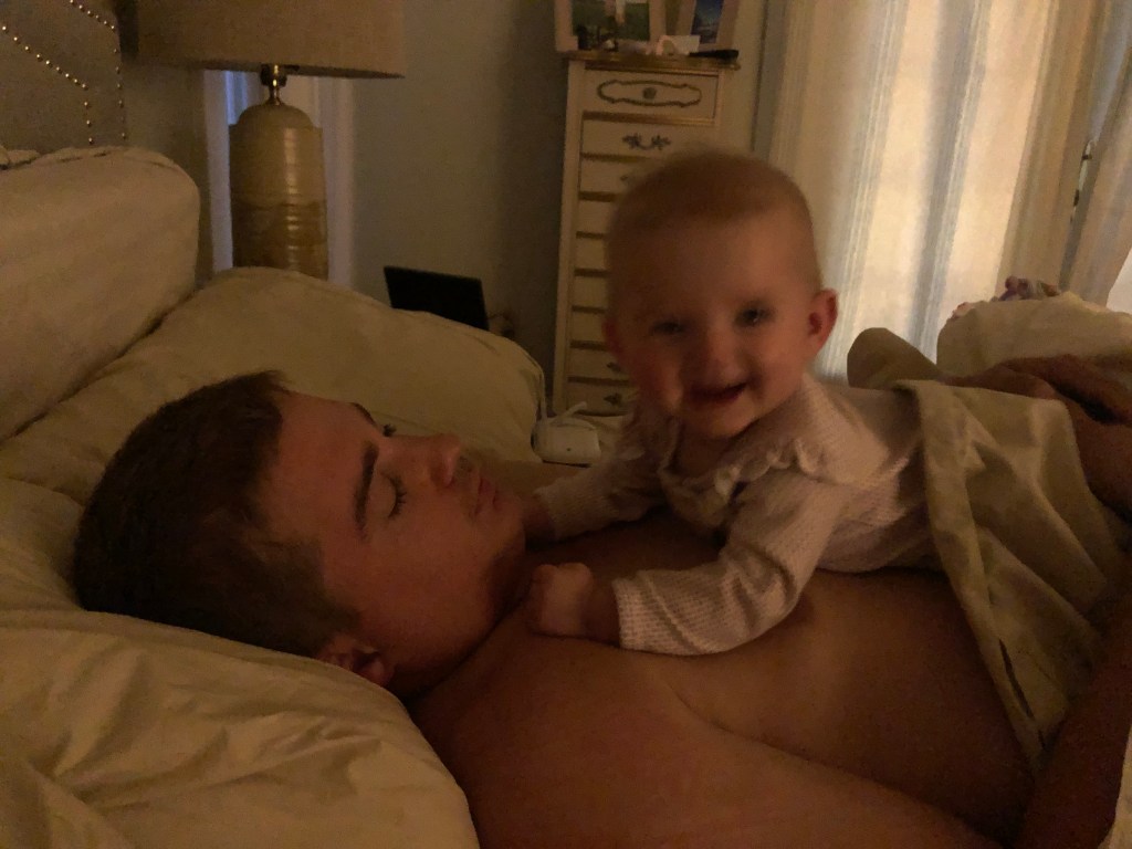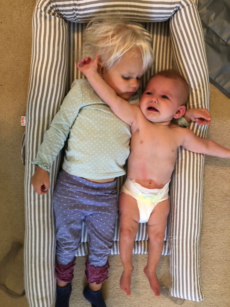 Eloise is still currently taking three naps a day. We get up early so her naps each start around 8:30-9:00am, 12:00pm, and 4:00pm or so. They range anywhere from 1-2.5 hours each. Usually only one 2.5 hour nap a day, the others about one hour. Eloise does seem to be regressing a little with naps, which is funny…. both of our girls have {LUCKILY} skipped the dreaded four month sleep regression, but both seem too show regression in naps. Eloise has been hard to settle, or wakes herself up and screams. I am starting to think she’s in that weird in between time on dropping to two naps a day, but just isn’t quittttte ready yet. Any regression is never fun, and Will has seen me ready to sit on the floor and cry some nights after these long days while he works like a crazy person, however, I will still take nap regressions over night sleep regressions ANY DAY…. though maybe I should rethink that… Will is at least home during the night hours… hmm.. But, let’s be honest- Eloise still hates bottles (believe me– we KEEP trying) so, it would still end up being me! Oh, and I do still night feed her once, around 9:30/10pm. That is also starting to get dropped. We had honestly been timing it around the same time Will takes Annabelle to pee, so that everyone is “occupied” and not noticing the other up for some reason.