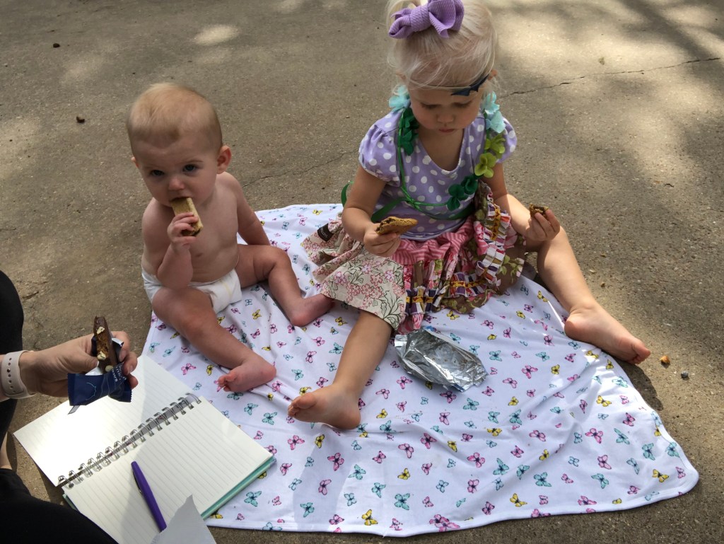 The girls and I we’re so pleased with our last trip to the zoo together, that we went again! The trips this month have been SO good! We are pretty good at timing the drive around two of Eloise’s naps and one of Annabelle’s naps, we pack a picnic lunch, and bring bathing suits for Annabelle to do the water area right before we leave. One particular trip was extra good- the gorilla walked up to us at the window! We’ve also been taking day trips to Southaven to have Chick-fi-la for lunch and pick up things at Target and Sam’s Club, as we need them. The girls have been doing great. They definitely have their moments, and Eloise knows how to hit the PERFECT pitch when she isn’t happy….. like ear- ringing. It’s a quality she has had from day one… But, I’ve learned to know I have to kind of go with the flow and not have many expectations, and we all three do great together!
